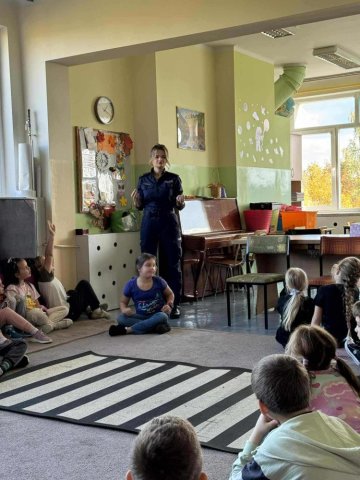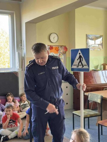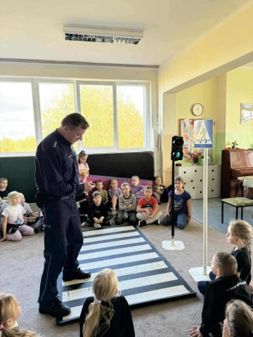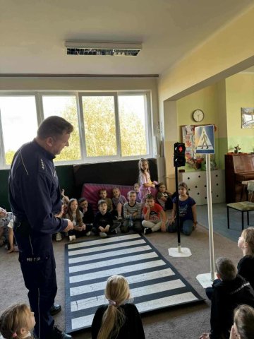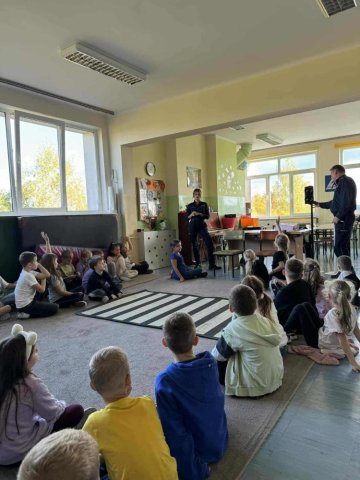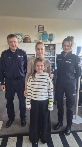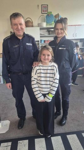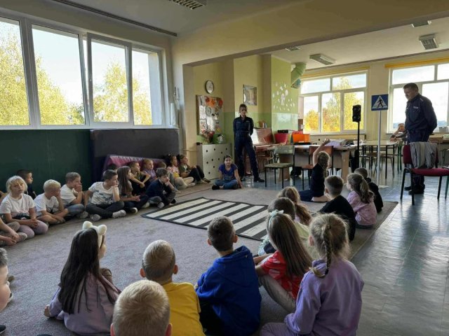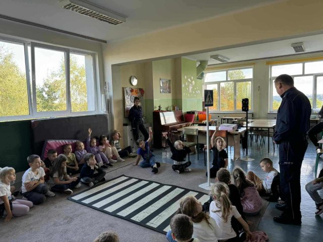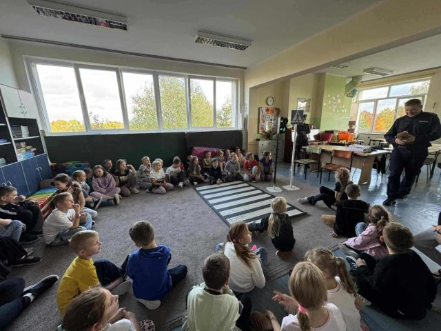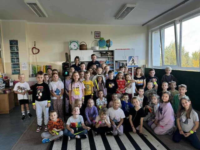 . W ramach edukacji w tym kierunku zaprosiliśmy do naszej Świetlicy Panią Policjant mł. asp. Agnieszkę Szydło-Olszowy i Pana Policjanta asp. szt. Grzegorza Cioska z KPP w Ropczycach, który jest tatą naszej uczennicy - Justynki . Policjanci przeprowadzili rozmowę z uczniami na temat bezpiecznego poruszania się po drogach, a w szczególności omówili zasady bezpiecznej drogi do i ze szkoły. Została również omówiona praca Policjanta, jak i zakres ich obowiązków. Uczniowie z zaciekawieniem wysłuchali prelekcji, a następnie zadawali pytania, na które funkcjonariusze udzielili odpowiedzi. Na koniec spotkania zrobiono pamiątkowe zdjęcia, a dzieci otrzymały odblaski i kolorowanki. Serdecznie dziękujemy przedstawicielom Policji za wizytę w naszej szkole. /Anna Dziurzyńska/