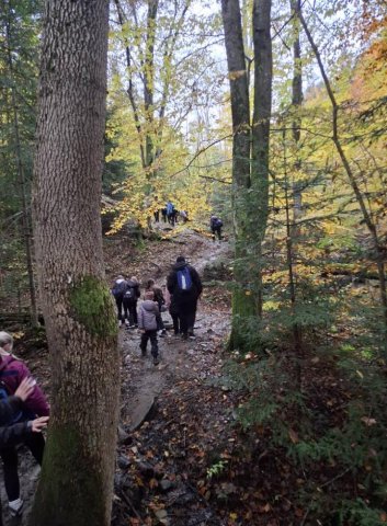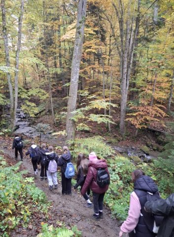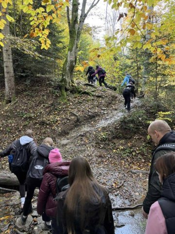 W sobotę, 18 października 2025 roku, członkowie Szkolnego Koła PTTK oraz miłośnicy turystyki – głównie uczniowie klas 7 i 8 – wyruszyli na XXVIII już Rajd Śladami Sławnych Ludzi. Tegoroczny cel? Malownicze, tajemnicze i – jak się okazało – błotniste Jeziorka Duszatyńskie!