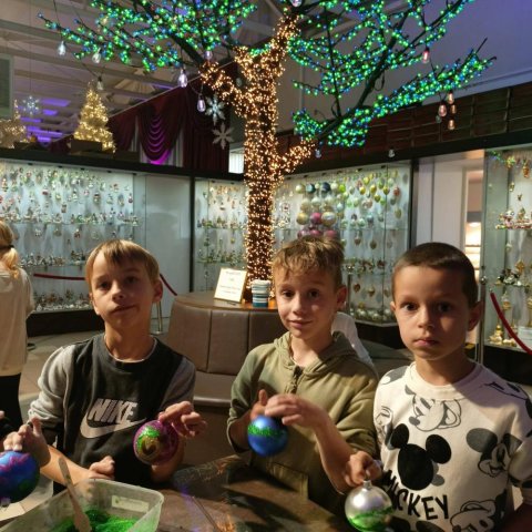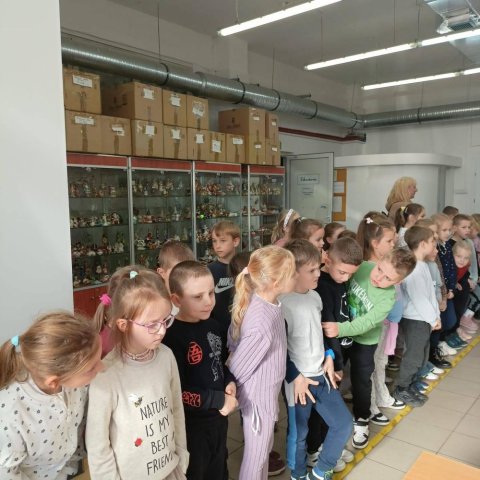 Podczas październikowej wycieczki pierwszoklasiści zwiedzili Muzeum Bombek Choinkowych w Nowej Dębie. Dzieci poznały cały proces powstawania szklanych ozdób, zaliczyły wizytę w dmuchalni i dekoratorni, oglądały kolekcjonerską wystawę rękodzieła artystycznego – setki ręcznie wyprodukowanych, niesamowitych ozdób prezentowanych w gablotach. Poznały kolekcje z różnych epok i części świata. Atrakcją wycieczki był udział w warsztatach zdobniczych – każdy uczeń własnoręcznie ozdobił swoją bombkę, którą zawiesi na bożonarodzeniowej choince. Zwiedzając to miejsce mogliśmy poczuć radość i magię zbliżających się wielkimi krokami Świąt Bożego Narodzenia.