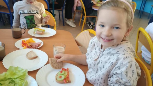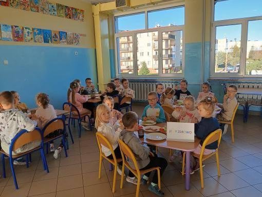 W oddziałach przedszkolnych dzieci doskonaliły umiejętności rozpoznawania i podawania nazw krajowych warzyw i owoców. Uczyły się jak ważne jest spożywanie owoców i warzyw, dowiedziały się co to są witaminy. Samodzielnie wykonały kolorowe, smaczne a przede wszystkim zdrowe kanapki.