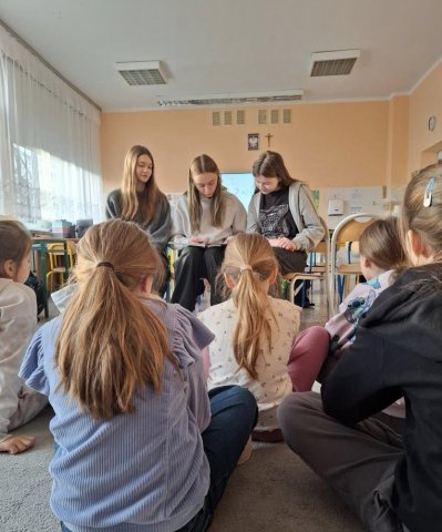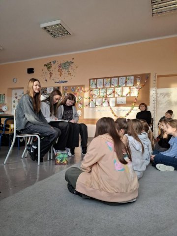 W czwartek, 20 listopada, fantastyczne dziewczyny z klasy 7B: Zuzia, Ania i Renia odwiedziły klasy 3C i 4B. Przygody Żaby Żanety zaciekawiły dzieci, a starsze koleżanki zadbały o formę przekazu. Czekamy na dalszy rozwój tej akcji!