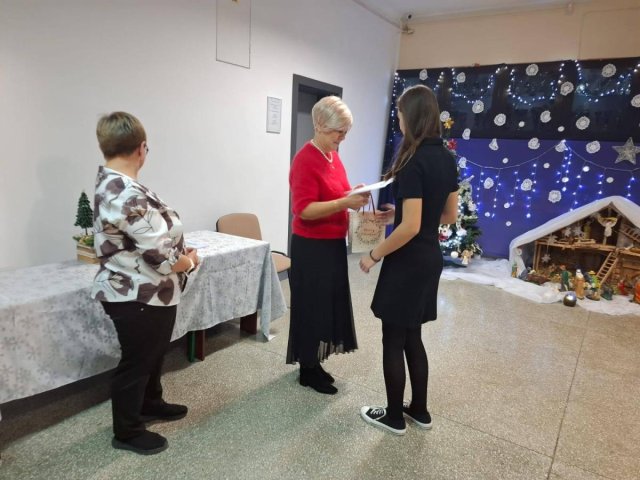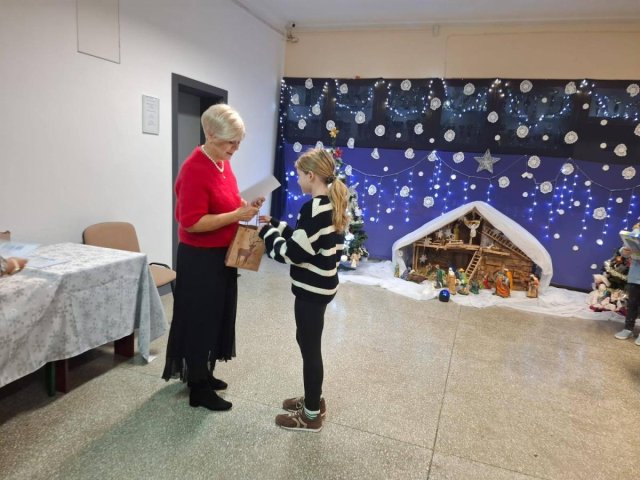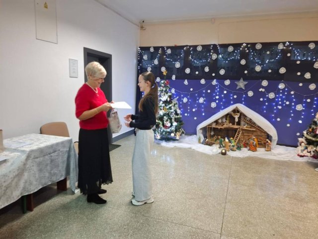 Język angielski stał się częścią naszego codziennego życia, otacza nas na etykietach i opakowaniach różnych produktów, bilbordach, w mediach, a jego znajomość otwiera nas na świat. Uczniowie klas 4–8 przygotowali prace plastyczne w formie słownika obrazkowego, prezentując angielskie słowa znalezione w otoczeniu oraz ich tłumaczenia. Komisja konkursowa wyróżniła najciekawsze, najbardziej kreatywne i estetyczne prace. Laureaci konkursu: I miejsce- Ptak Szymon- kl. 7c, Kacper Karabela- kl. 5b, Karolina Fąfara- kl. 5b Serdecznie gratulujemy laureatom oraz wszystkim uczestnikom konkursu! Wręczenie nagród przez panią Dyrektor Dorotę Worowską odbyło się 18 grudnia 2025 r. Dla laureatów przygotowano świąteczne nagrody-niespodzianki. Organizatorzy: Iryna Burban Merry Christmas and a Happy New Year! |