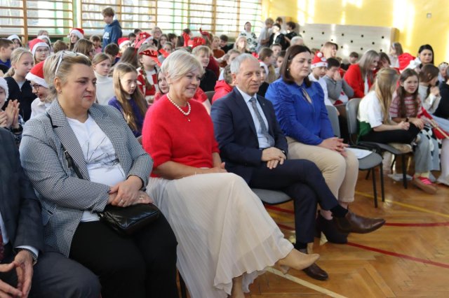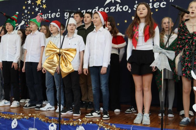 Wydarzenie zgromadziło społeczność szkolną oraz zaproszonych gości, wprowadzając wszystkich w radosny, bożonarodzeniowy nastrój. W progach naszej szkoły powitaliśmy: zastępcę Burmistrza Ropczyc - pana Michała Przystasia, Przewodniczącego Komisji ds. Edukacji, Kultury i Sportu - pana Bolesława Bujaka, Radnego Rady Miejskiej w Ropczycach - pana Jana Rydzika, Przewodniczącą Osiedla Północ - panią Agatę Gawron, Przewodniczącego Osiedla Św. Barbary - pana Wojciecha Piątkiewicza, specjalistę ds. BHP - pana Mariusza Jodłowskiego, przedstawicielki Rady Rodziców - panie Joannę Jemioło oraz Wioletę Mazur. Na scenie zaprezentowały się zespoły klasowe, a także uzdolnieni muzycznie uczniowie, którzy zachwycili grą na instrumentach. Występom towarzyszył nauczyciel muzyki – pan Grzegorz Rak, wspierając młodych artystów swoim doświadczeniem i pasją. Koncert z wdziękiem i ciepłem poprowadziły nauczycielki wychowania przedszkolnego: pani Anna Drozd oraz pani Anna Podulka. Spotkanie było nie tylko okazją do wspólnego kolędowania, ale także do integracji i podkreślenia wartości tradycji świątecznych. Dziękujemy wszystkim wykonawcom, organizatorom oraz gościom za obecność i stworzenie wyjątkowej, świątecznej atmosfery. /Monika Kawa/ |