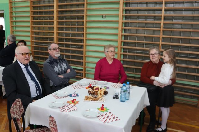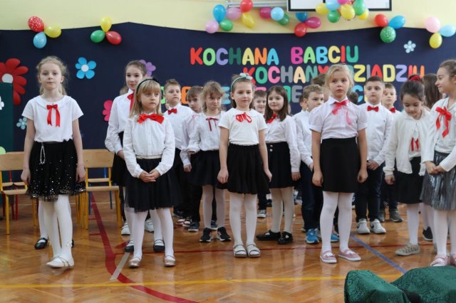 Podczas spotkania zaprezentowano bogaty program artystyczny przygotowany przez uczniów klas pierwszych pod opieką wychowawczyń: pani Renaty Klimek i pani Bernadetty Chmury. Nie zabrakło wierszy, piosenek, tańców, które wzruszyły zaproszonych gości i wywołały wiele uśmiechów. Dzieci z wielkim zaangażowaniem występowały na scenie, starając się jak najlepiej oddać wyjątkowy charakter tego dnia. Po części artystycznej wnuczęta wręczyły swoim babciom i dziadkom własnoręcznie wykonane upominki oraz złożyły serdeczne życzenia. Był to moment pełen ciepła i radości, który na długo pozostanie w pamięci zarówno dzieci, jak i zaproszonych gości. Uroczystość zakończyła się wspólnymi rozmowami przy słodkim poczęstunku. Spotkanie było doskonałą okazją do integracji społeczności szkolnej oraz umocnienia więzi międzypokoleniowych. Dziękujemy wszystkim Babciom i Dziadkom za obecność oraz za miłość, troskę i wsparcie, jakimi każdego dnia obdarzają swoje wnuki. Życzymy dużo zdrowia, uśmiechu i wielu pięknych chwil spędzonych w gronie rodziny. /Monika Kawa/ |