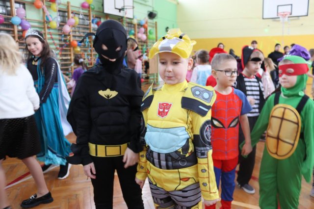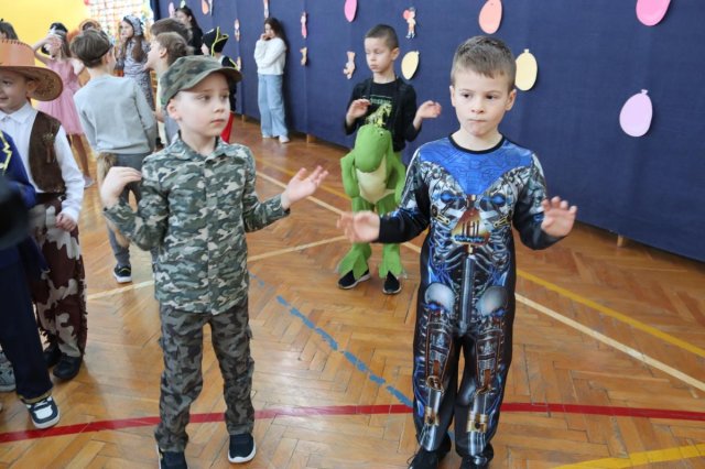 Bal został podzielony na dwie części. W pierwszej fantastycznie bawili się najmłodsi – dzieci z oddziałów przedszkolnych oraz uczniowie klas I–III. Następnie do wspólnej zabawy dołączyli uczniowie klas IV–VIII. Wszyscy uczestnicy mieli okazję wziąć udział w licznych konkursach, tańcach i zabawach integracyjnych. O doskonałą atmosferę zadbali animatorzy z firmy „Nasz Tygrysek”, którzy z ogromnym zaangażowaniem prowadzili zabawy, zachęcając uczniów do aktywnego uczestnictwa i wspólnej radości. Serdeczne podziękowania kierujemy do Rady Rodziców za zaangażowanie w organizację balu oraz przygotowanie poczęstunku dla uczniów. Dzięki wspólnej pracy i wsparciu dorosłych tegoroczna zabawa karnawałowa na długo pozostanie w pamięci wszystkich uczestników. /Monika Kawa/ |