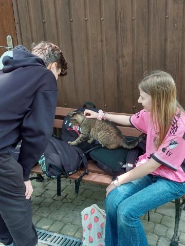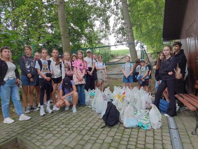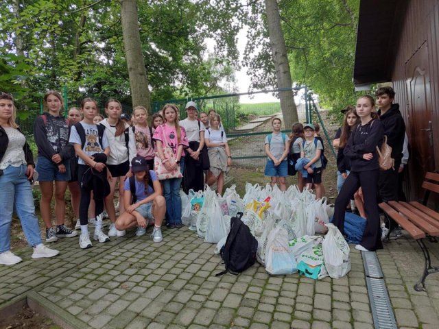 Celem wizyty było przekazanie rzeczy zebranych w ramach szkolnej akcji PEŁNA MISKA DLA SCHRONISKA. Mimo ciepła i zmęczenia, wszyscy dzielnie maszerowali, a podarunki dotarły do czworonożnych adresatów. . Daliśmy radę! Satysfakcja z pomagania i radość psiaków była najlepszą nagrodą za trud. Szczęście na twarzach młodzieży mieszało się ze wzruszeniem. Brawo oni! A wszystkim darczyńcom dziękujemy za zaangażowanie.