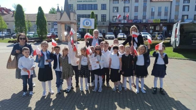 30 kwietnia dzieci z oddziału przedszkolnego 0A wraz ze swoją wychowawczynią - panią Krystyną Górą oraz panem wicedyrektorem - Jerzym Motyką, jako reprezentacja naszej szkoły, wzięły udział w obchodach Święta Flagi na ropczyckim Rynku. |