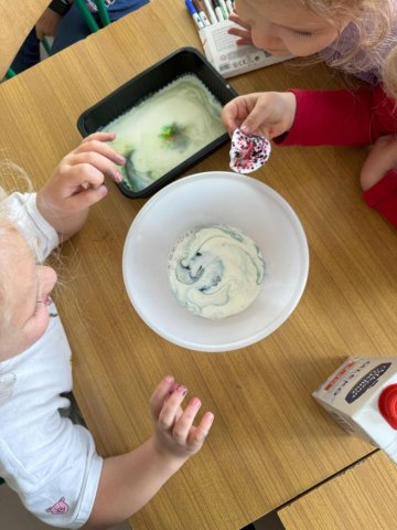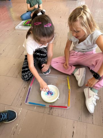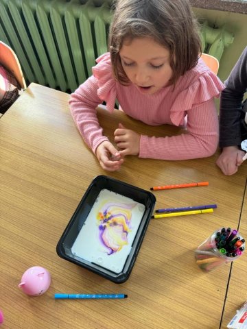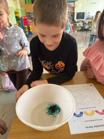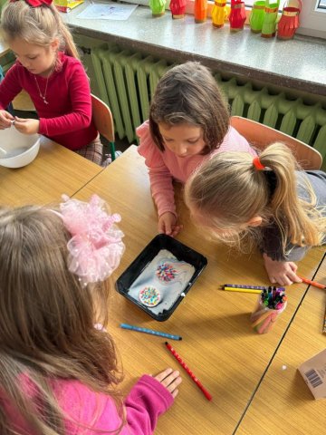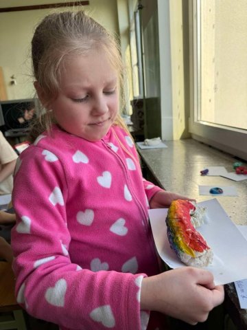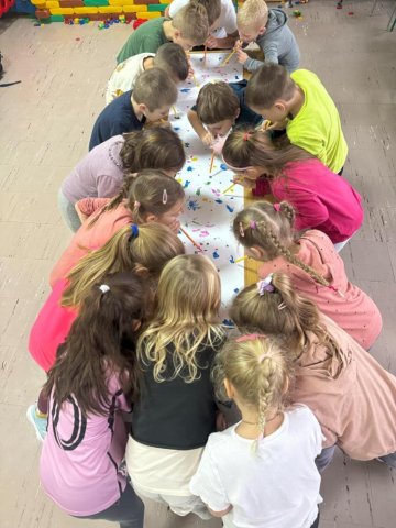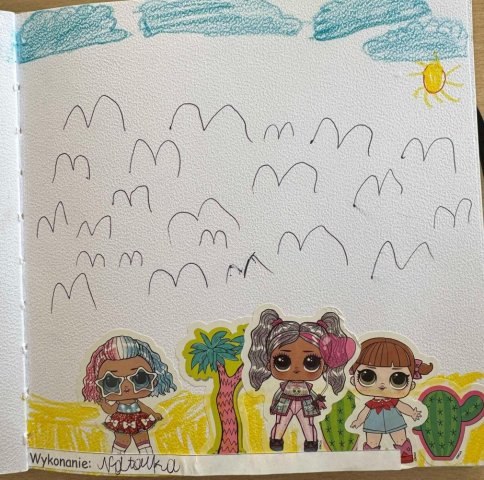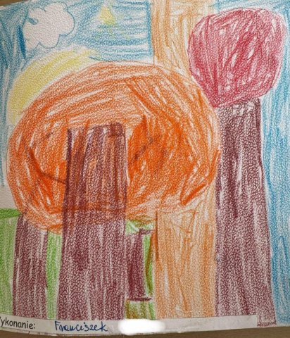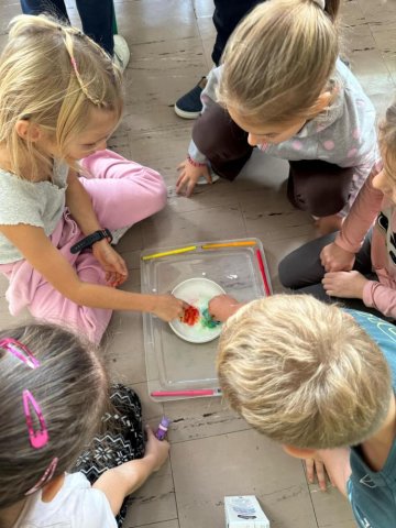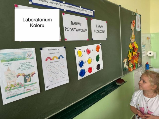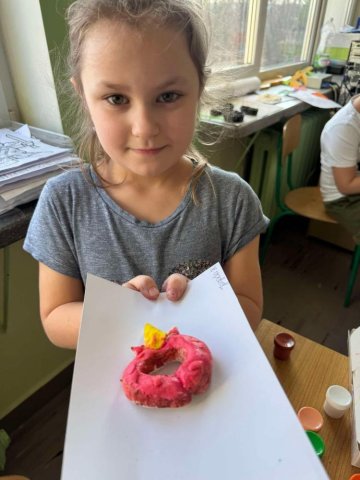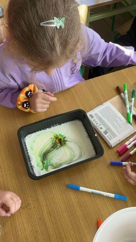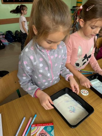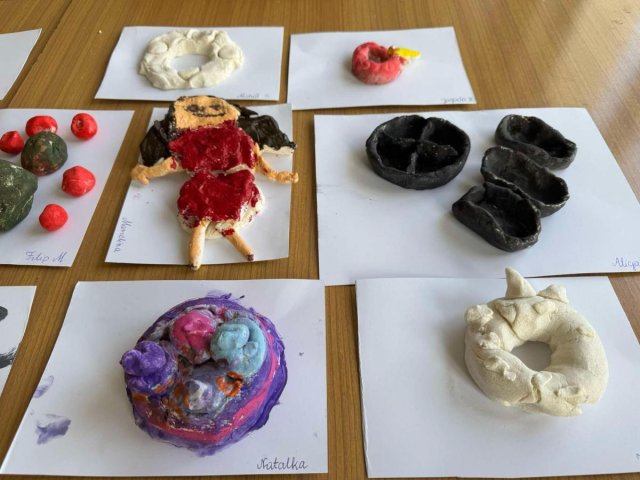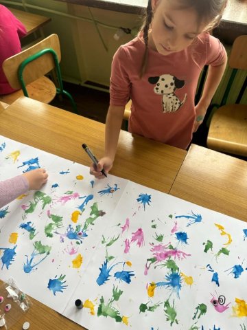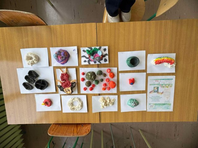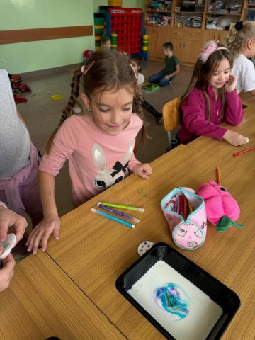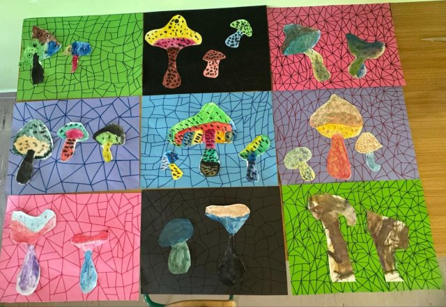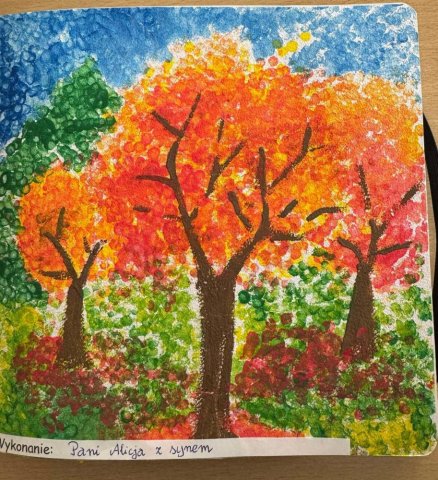 W pierwszym semestrze uczniowie wykonali następujące zadania: Zad. 1 „Freblowskie przeplatanki i konstrukcje”. Zad. 2 „Ulepione z gliny” ( masy solnej). Zad. 3 „Laboratorium koloru”. Zad. 3b „Barwy podstawowe i pochodne”. Zad. 10 „Szybki obraz”. Zad. 15 „Wędrujący album”. Zadanie miesiąca: - wrzesień: „Międzynarodowy Dzień Kropki”. - październik: „Kolorowe grzyby”. /Alicja Krzyżak - Janowska/