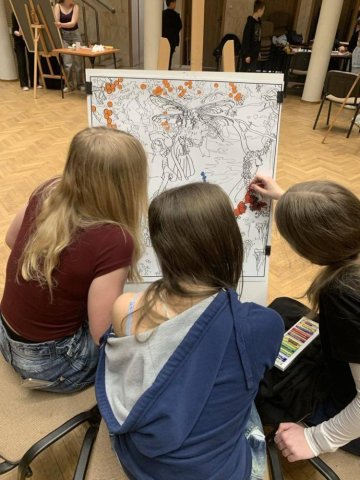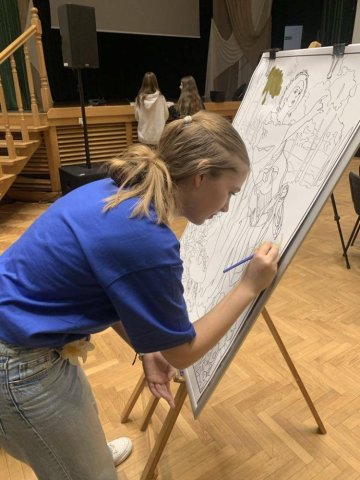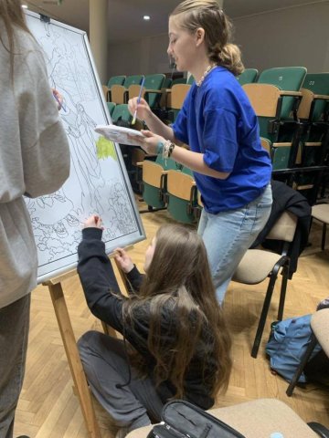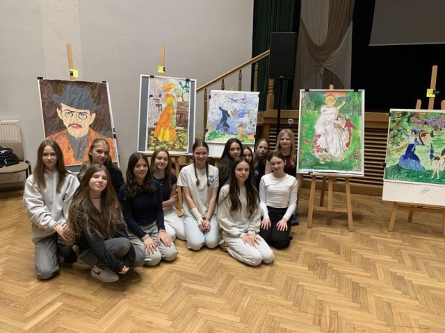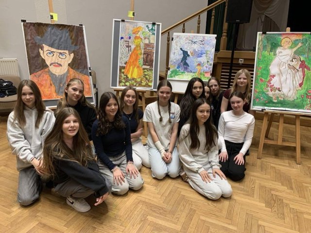 Uczestniczki warsztatów artystycznych: Pociask Liliana, Bujak Julia, Kipa Julia, Żyła Zuzanna, Dłużeń Kinga, Jasek Nikola, Sypel Maja, Momola Jessica, Rokosz Lena, Misiura Kamila, Raś Milena, Jaracz Lena. Dziewczęta wykonały własne dzieła sztuki inspirując się i wzorując na obrazach Mistrza. Ciekawe warsztaty, miłe spotkanie, twórcza praca, kreatywność i zgodna współpraca. BYŁO SUPER !!!