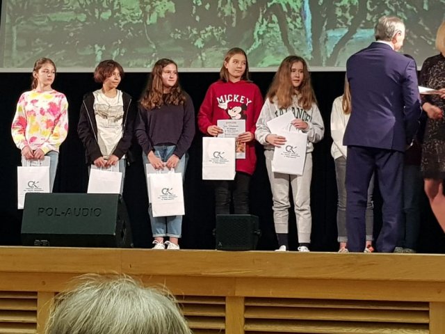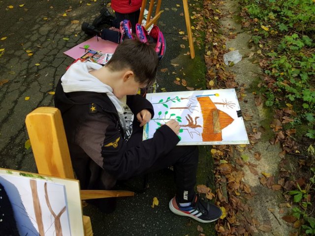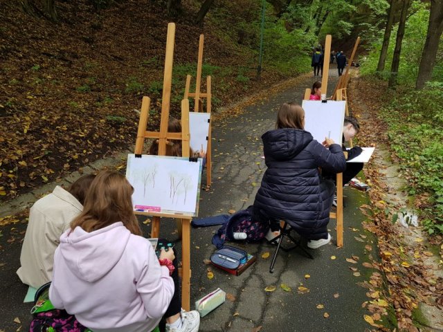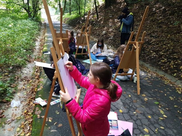 Tegorocznym tematem przewodnim były „Jesienne inspiracje”. Z naszej szkoły wzięli udział uczniowie klasy 7c: Julia Misiura, Julia Piaskowska, Zuzanna Jaworek, Maja Zabawska, Blanka Mosior, Antoni Żurek. Opiekunem był pedagog szkolny, pan Andrzej Cichoń. Plener odbył się w Szwajcarii Ropczyckiej, gdzie koło godziny 1000 udaliśmy się razem z naszymi opiekunami. Technika była dowolna, więc mieliśmy duże pole do popisu. Jedni przynieśli ze sobą farby i malowali, inny użyli kredek, a jeszcze inni wykonali pracę pastelami. Każdy miał możliwość zaprezentowania swoich umiejętności ulubioną przez siebie techniką. Inspirowaliśmy się przyrodą dookoła nas i staraliśmy się jak najbardziej oddać piękno Szwajcarii Ropczyckiej w tym jesiennym okresie. Pogoda bardzo nam sprzyjała, więc był to dla wszystkich bardzo miły czas spędzony na malowaniu. Na wykonanie prac mieliśmy bardzo dużo czasu, bo aż 2 godziny. Gdy skończyliśmy malować, wróciliśmy do Centrum Kultury na poczęstunek i z niecierpliwością oczekiwaliśmy ogłoszenia wyników. Około godziny 13 nastąpiło ogłoszenie wyników. Jurorzy zaczęli od najmłodszych. Po ogłoszeniu klas 4-6 nadszedł czas na wyniki klas 7-8. Gdy pani prowadząca przeczytała nasze nazwiska, byłyśmy bardzo zaskoczone, że obie zajęłyśmy 3 miejsce. Otrzymałyśmy dyplomy i symboliczne nagrody. Po rozdaniu wszyscy się pożegnali i wrócili do domów. /Julia Misiura, Julia Piaskowska/ |
