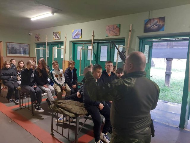 Uczniowie otrzymali profesjonalne przeszkolenie i zapoznali się z zasadami BHP obowiązującymi na strzelnicy. Pod bacznym okiem instruktora - Pana Piotra, każdy oddał serię 13 strzałów z broni MP15, a zwycięzca mógł strzelić z pistoletu Glock.