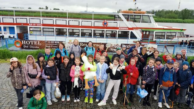 Zwiedzanie rozpoczęliśmy przejściem do miejsca naszej zbiórki, przy głównym oddziale PTTK im. Aleksandra Patkowskiego w Sandomierzu, oczekując na naszą panią przewodnik. Około godziny 10:00 nasze zwiedzanie miasta rozpoczęliśmy, przechodząc podziemną Trasą Turystyczną – słynnymi sandomierskimi lochami z XV, XVI w., gdzie, według legendy, dzielna Halina Krępianka oddała swoje życie ratując Sandomierz przed wojskiem tatarskim. Następnym punktem naszej wycieczki było wybicie własnoręcznie pamiątkowej monety „talarka” w sali oddziału PTTK, spacer po Rynku, zwiedzanie Bramy Opatowskiej i Zbrojowni Rycerskiej, w której uczniowie mogli usłyszeć różne dawne historie o Zawiszy Czarnym. Była również możliwość przymierzenia prawdziwej zbroi rycerskiej, ujęcia w dłonie prawdziwego miecza i przebrania się za Tatara lub Kasztelankę. Nasze zwiedzanie miało swoją kontynuację w Muzeum Diecezjalnym, gdzie mogliśmy zobaczyć rękawiczki Królowej Jadwigi, piękne rzeźby Świętych, a nawet prawdziwe stopy słonia. Kolejnym punktem naszej wędrówki było zwiedzanie pięknego kościoła Św. Jakuba – najstarszego obiektu w Sandomierzu oraz jednej z pierwszych budowli ceglanych w Polsce. Spacerując lessowym wąwozem Królowej Jadwigi, dotarliśmy do kapitana statku, z którym mieliśmy okazję wyruszyć w rejs po Wiśle. Nie zabrakło również czasu na odpoczynek w Rynku i zakup pamiątek. Po długim dniu zwiedzania Sandomierza, wyruszyliśmy autobusem do Ropczyc. Wszyscy będziemy długo wspominać tę wycieczkę, nie ze względu na deszczową pogodę, ale dlatego, że wszyscy świetnie spędzili na niej czas. Z uśmiechem i piosenką wróciliśmy do swoich domów. Opiekę nad uczniami pełnili: Beata Staroń, Renata Kozub, Teresa Szymańczak, Monika Pocisk. Poniżej relacja zdjęciowa w tego dnia. /Monika Pociask/ |
