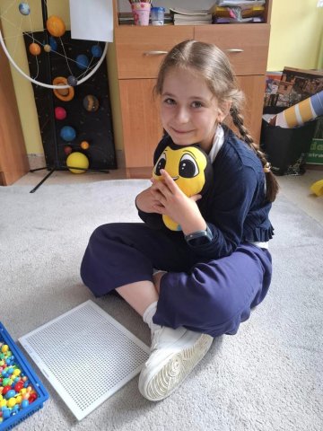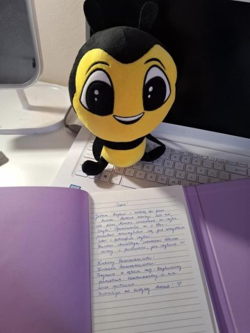Od pewnego czasu w klasie 1C pojawił się pewien ciekawy osobnik. To Bzykuś! Pszczółka uwielbiająca słuchać głośnego czytania. |