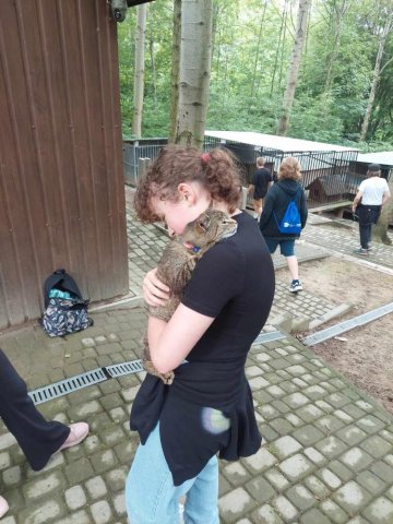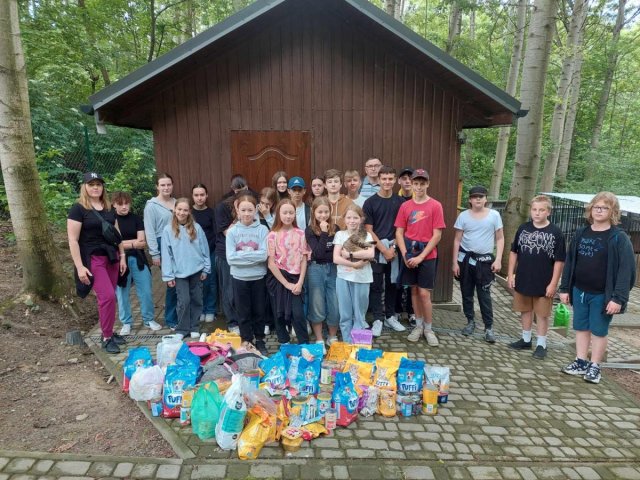 Celem wizyty było przekazanie rzeczy zebranych w ramach szkolnej akcji PEŁNA MISKA DLA SCHRONISKA. Mimo ciepła i zmęczenia, wszyscy dzielnie maszerowali, a podarunki dotarły do czworonożnych adresatów. Daliśmy radę! Satysfakcja z pomagania i radość psiaków była najlepszą nagrodą za trud. Szczęście na twarzach młodzieży mieszało się ze wzruszeniem. Brawo oni! A wszystkim darczyńcom dziękujemy za zaangażowanie!