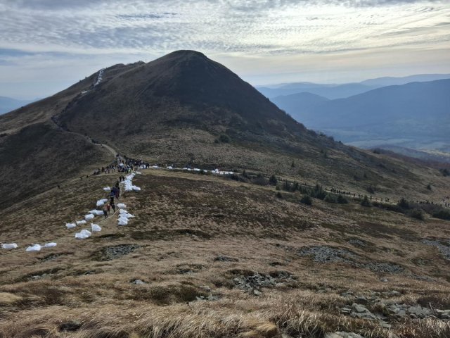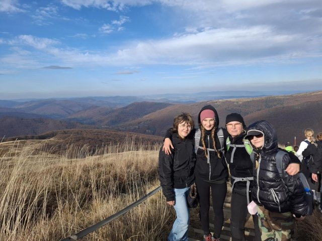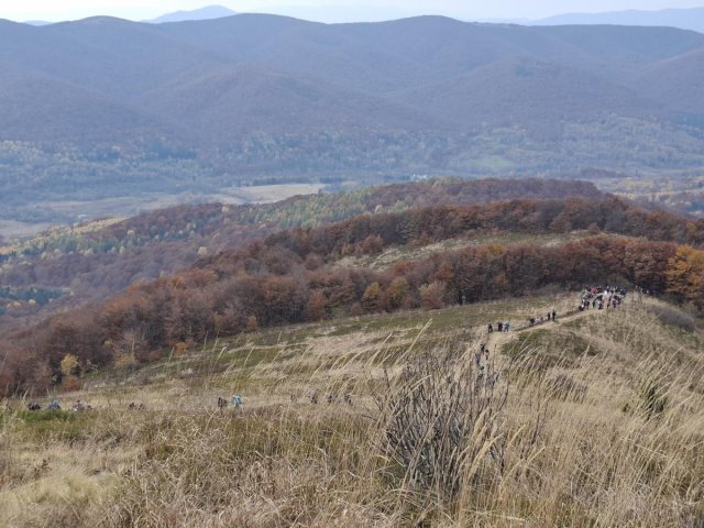 Postanowiliśmy się o tym osobiście przekonać więc w sobotę 26 października wstaliśmy bladym świtem (a dokładniej - ciemną nocą??) by już o 10.00 godzinie być na szlaku na spotkanie z Królową Bieszczad - Tarnicą. Pogoda była wymarzona. Słońce w całej okazałości, a liście we wszystkich kolorach jesieni. Nawet porywisty na szczytach wiatr miał swój magiczny urok, zwłaszcza że u podnóży Tarnicy zaserwowano nam jeszcze jedną atrakcję - wirujące nad głowami helikoptery. I choć wylądowały tuż przed nami, nie skorzystaliśmy z podwózki. Jak rajd, to rajd. Nie ma to jak pieszo.?? |