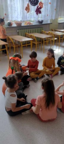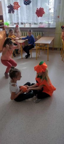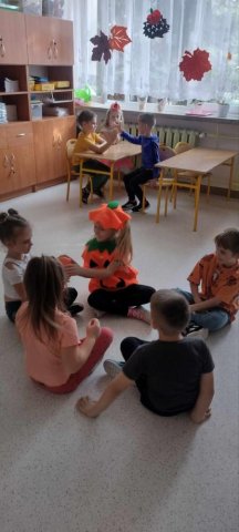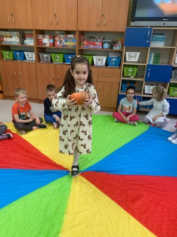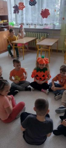 W tym dniu dzieci poznały wiele ciekawostek na temat dyni, dowiedziały się dlaczego dynia jest tak wyjątkowa. Nie zabrakło również zabaw i tańców z dynią. Na koniec dzieci wykonały własne dyniowe prace plastyczne.