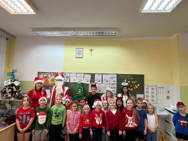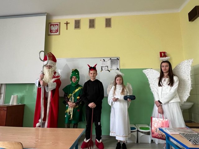 Zanim je rozdał, upewnił się, czy dzieci były grzeczne. Wspólnie śpiewane kolędy, świąteczne zagadki i odświętne stroje sprawiły, że jeszcze bardziej nie możemy doczekać się Świąt Bożego Narodzenia. Mikołajowi towarzyszyli jego pomocnicy- anioły, żywa choinka, a do złego próbował namawiać diabełek. Uczniowie jednak nie dali się zwieść złemu i mamy nadzieję, że tak będzie nie tylko w tym przedświątecznym czasie. Wszyscy chętni wraz z wychowawcami mogli również skorzystać z niespodzianki przygotowanej przez Samorząd Uczniowski - mikołajowej foto-budki. /Anna Świniuch/