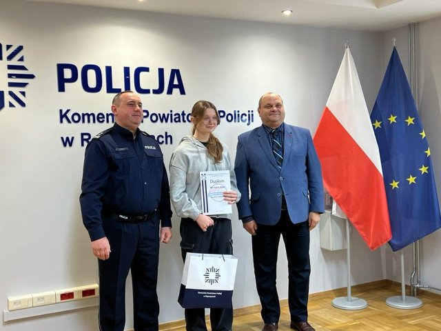 | Jury wybrało najlepsze prace w trzech kategoriach wiekowych na szczeblu powiatowym. W Komendzie Powiatowej Policji w Ropczycach wręczono nagrody dla zwycięzców. Reprezentantka naszej szkoły - Michalina Feret z kl. 6b, pod opieką pana Zdzisława Barana, zdobyła III miejsce w swojej kategorii wiekowej 10-12 lat. Plakat Michaliny dotyczył profilaktyki bezpieczeństwa i zagrożeń wynikających z palenia papierosów, picia alkoholu czy zażywania środków odurzających. Oceniający zwracali uwagę na różnorodność technik wykonania, na wartość artystyczną, ale nie mniej ważny był przekaz - bezpieczeństwo dzieci w czasie wakacji. Autorzy prac w oryginalny sposób prezentowali właściwe zachowania w niebezpiecznych sytuacjach oraz sposoby unikania zagrożeń. Nagrodę Michalina odebrała w dniu 12 grudnia 2023r. podczas uroczystego spotkania w świetlicy KPP w Ropczycach wraz z opiekunem panią Natalią Maciołek. Jesteśmy dumni z naszej uczennicy i życzymy jej wielu kolejnych sukcesów na szczeblach powiatowych i wojewódzkich. /Natalia Maciołek/ |