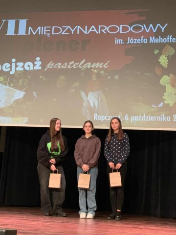 W plenerze wzięły udział uczennice klas siódmych naszej szkoły: Amelia Sarad, Laura Radek, Antonina Ziarnik i Gaja Bieszczad. Prace wykonane przez uczestników zostały zaprezentowane na wystawie czasowej w holu Centrum Kultury im. J.Mehoffera. Uczennica Amelia Sard z kl. VII c zdobyła III miejsce. Gratulujemy Amelii wygranej, a pozostałym uczennicom dziękujemy za udział i zaangażowanie w pracę twórczą. Uczennice wykonały piękne pejzaże ukazujące jesienny krajobraz najbliższej okolicy. /Beata Kołodziej/ |