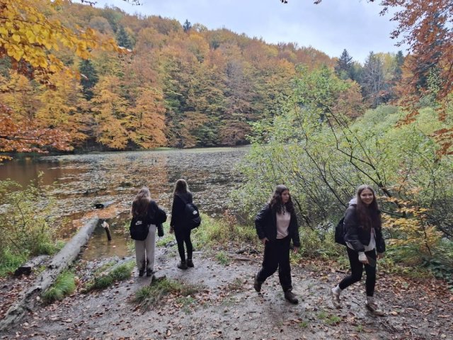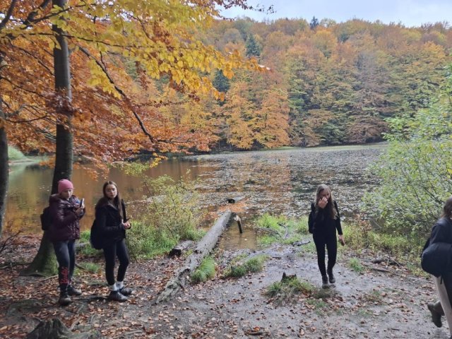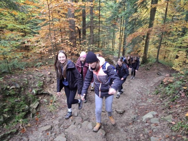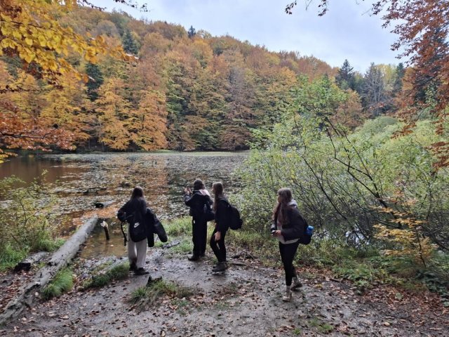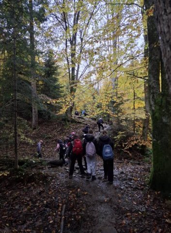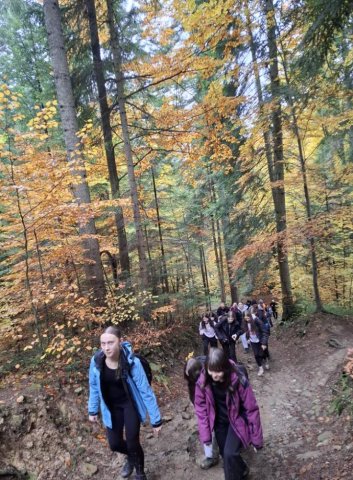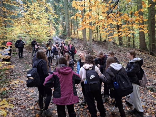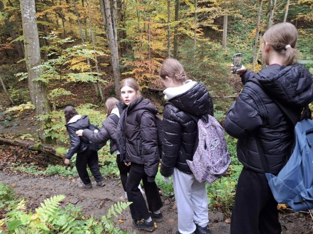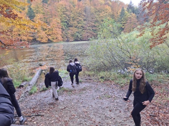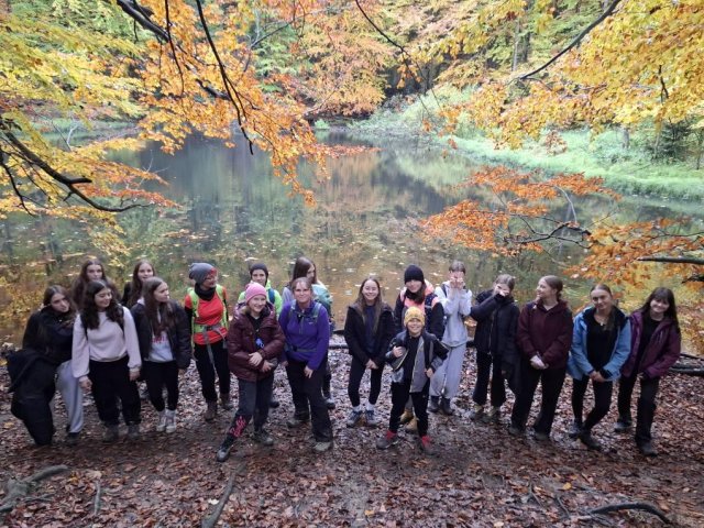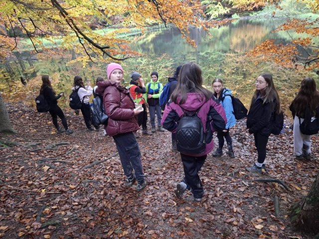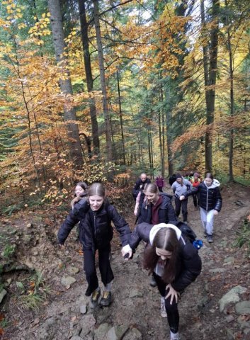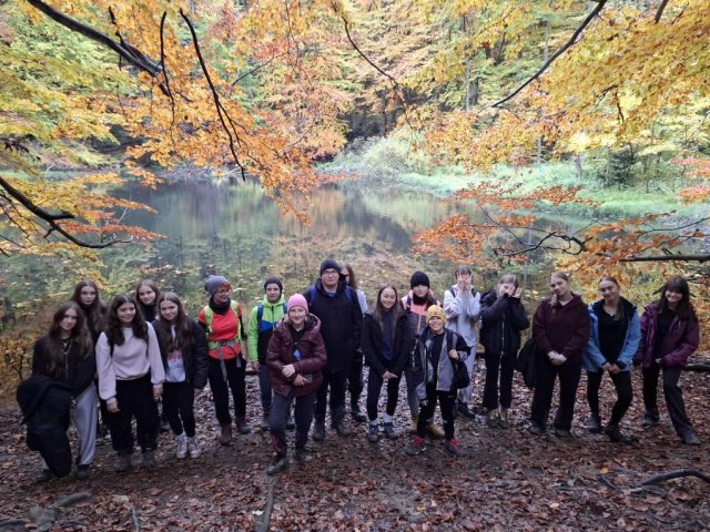 W sobotę, 18 października 2025 roku, członkowie Szkolnego Koła PTTK oraz miłośnicy turystyki – głównie uczniowie klas 7 i 8 – wyruszyli na XXVIII już Rajd Śladami Sławnych Ludzi. Tegoroczny cel? Malownicze, tajemnicze i – jak się okazało – błotniste Jeziorka Duszatyńskie!