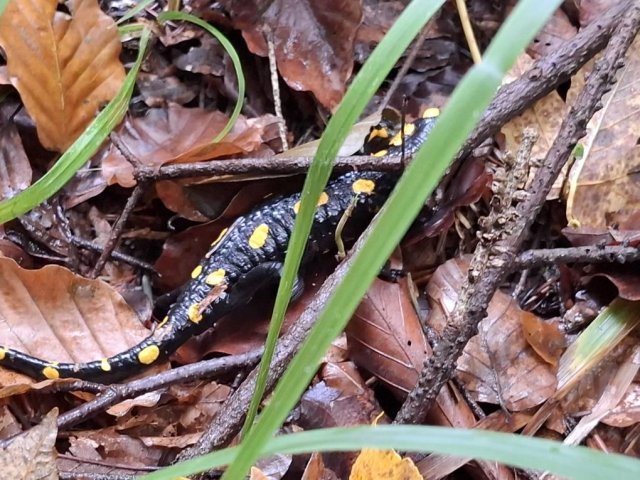 Na trasie spotkaliśmy salamandrę plamistą, która pozowała nam jak rasowa modelka, oraz kilka pięknych, choć niestety trujących grzybów – idealnych do podziwiania, ale nie do degustacji.
