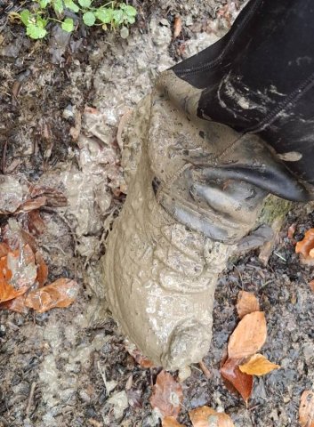 Największą atrakcją okazało się jednak… błoto. Dużo błota. Bardzo dużo błota. Ślizgaliśmy się na nim jak na nartach, zapadaliśmy po kolana, a czasem nawet głębiej. Zdarzało się, że buty znikały w czeluściach błotnistej otchłani, a ich wydobycie wymagało współpracy zespołowej na poziomie ratowników górskich. Błoto w butach, na butach, obok butów – wszędzie! Ale śmiechu było co niemiara, a humory – jak zawsze – dopisały.