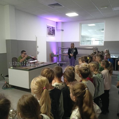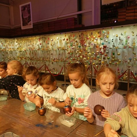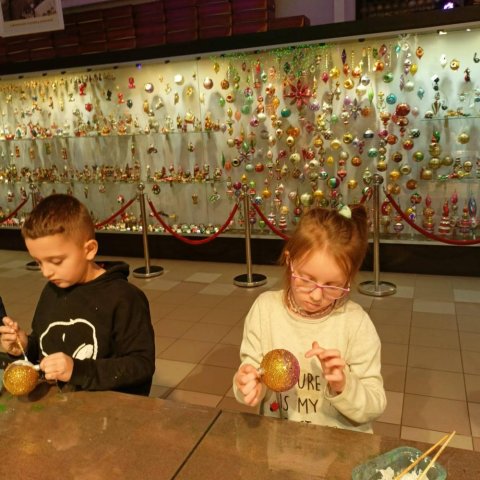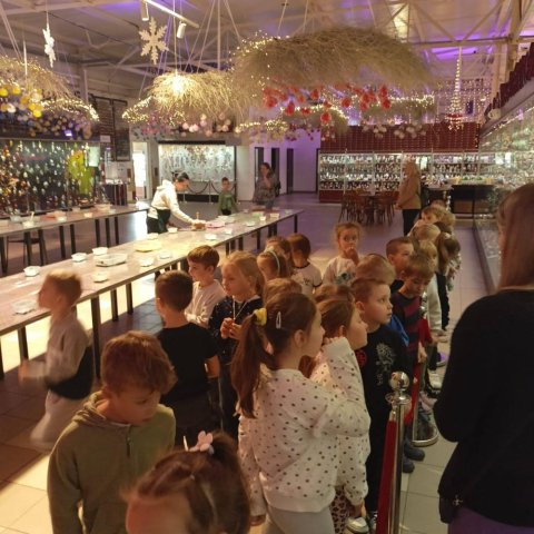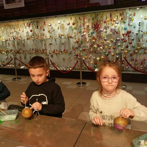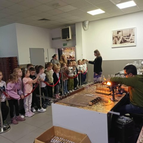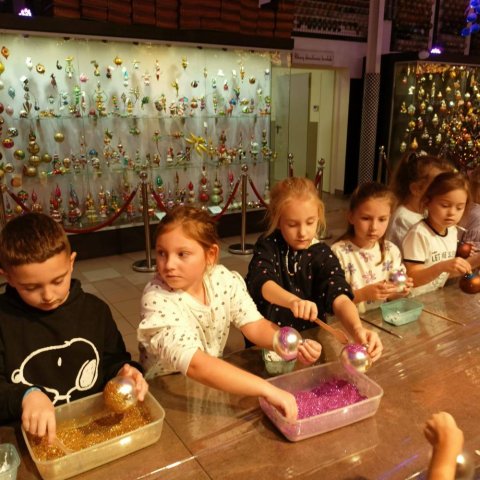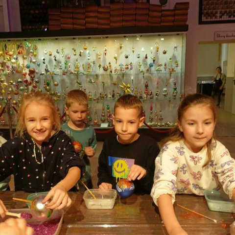 Podczas październikowej wycieczki pierwszoklasiści zwiedzili Muzeum Bombek Choinkowych w Nowej Dębie. Dzieci poznały cały proces powstawania szklanych ozdób, zaliczyły wizytę w dmuchalni i dekoratorni, oglądały kolekcjonerską wystawę rękodzieła artystycznego – setki ręcznie wyprodukowanych, niesamowitych ozdób prezentowanych w gablotach. Poznały kolekcje z różnych epok i części świata. Atrakcją wycieczki był udział w warsztatach zdobniczych – każdy uczeń własnoręcznie ozdobił swoją bombkę, którą zawiesi na bożonarodzeniowej choince. Zwiedzając to miejsce mogliśmy poczuć radość i magię zbliżających się wielkimi krokami Świąt Bożego Narodzenia.