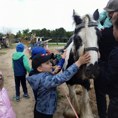Dzieci obserwowały z bliska zwierzęta gospodarskie oraz poznały wybrane gatunki zwierząt egzotycznych, np. papużki, małpki, jeżozwierze, pieski preriowe, kangury, a nawet wielbłąda, serwala i strusia afrykańskiego. Dużą radość sprawiło dzieciom karmienie lam i alpak, a także osiołków, koziołków i królików. Jednak najwięcej radości sprawiła wszystkim przejażdżka konna.