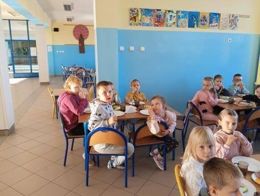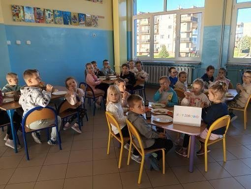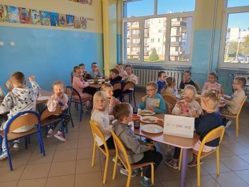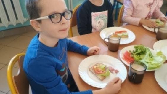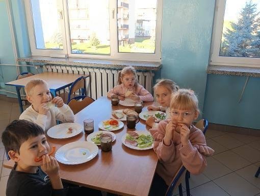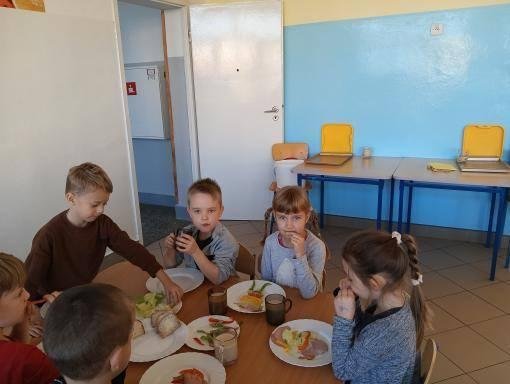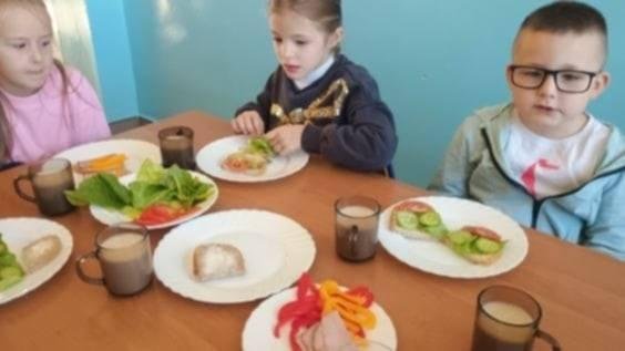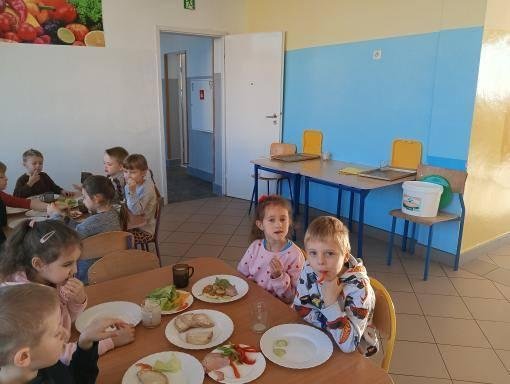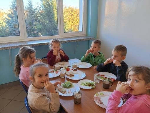 W oddziałach przedszkolnych dzieci doskonaliły umiejętności rozpoznawania i podawania nazw krajowych warzyw i owoców. Uczyły się jak ważne jest spożywanie owoców i warzyw, dowiedziały się co to są witaminy. Samodzielnie wykonały kolorowe, smaczne a przede wszystkim zdrowe kanapki.