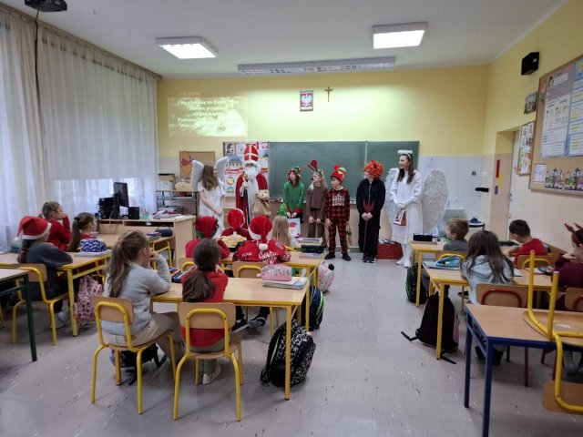 Z inicjatywy Samorządu Uczniowskiego oraz jego opiekunów zorganizowano coroczne szkolne Mikołajki. Wesoły, kolorowy korowód ze świętym Mikołajem na czele odwiedzał kolejne klasy, wywołując uśmiechy i serdeczne reakcje uczniów. 🎅🎁 Mikołaj wraz z pomocnikami obdarowywał wszystkich drobnymi upominkami i życzeniami świątecznej radości. Nie zabrakło też wspólnego śpiewania, pozowania do pamiątkowych zdjęć i wielu zabawnych chwil. Dziękujemy Samorządowi Uczniowskiemu oraz opiekunom za przygotowanie tego wyjątkowego dnia, który wprowadził nas w świąteczny nastrój i przypomniał, jak ważna jest radość, życzliwość i wspólne świętowanie. 🎄 /Monika Kawa/ |