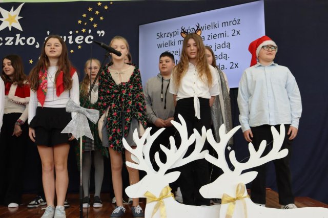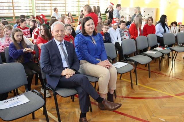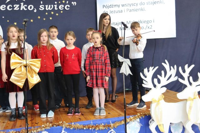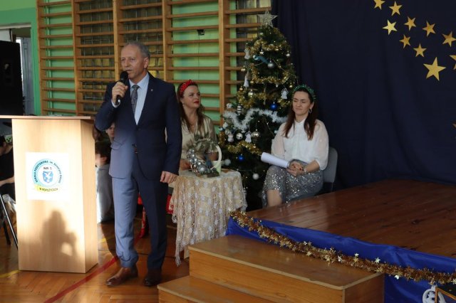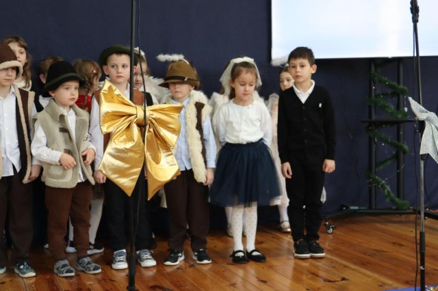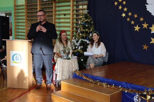 Wydarzenie zgromadziło społeczność szkolną oraz zaproszonych gości, wprowadzając wszystkich w radosny, bożonarodzeniowy nastrój. W progach naszej szkoły powitaliśmy: zastępcę Burmistrza Ropczyc - pana Michała Przystasia, Przewodniczącego Komisji ds. Edukacji, Kultury i Sportu - pana Bolesława Bujaka, Radnego Rady Miejskiej w Ropczycach - pana Jana Rydzika, Przewodniczącą Osiedla Północ - panią Agatę Gawron, Przewodniczącego Osiedla Św. Barbary - pana Wojciecha Piątkiewicza, specjalistę ds. BHP - pana Mariusza Jodłowskiego, przedstawicielki Rady Rodziców - panie Joannę Jemioło oraz Wioletę Mazur. Na scenie zaprezentowały się zespoły klasowe, a także uzdolnieni muzycznie uczniowie, którzy zachwycili grą na instrumentach. Występom towarzyszył nauczyciel muzyki – pan Grzegorz Rak, wspierając młodych artystów swoim doświadczeniem i pasją. Koncert z wdziękiem i ciepłem poprowadziły nauczycielki wychowania przedszkolnego: pani Anna Drozd oraz pani Anna Podulka. Spotkanie było nie tylko okazją do wspólnego kolędowania, ale także do integracji i podkreślenia wartości tradycji świątecznych. Dziękujemy wszystkim wykonawcom, organizatorom oraz gościom za obecność i stworzenie wyjątkowej, świątecznej atmosfery. /Monika Kawa/ |