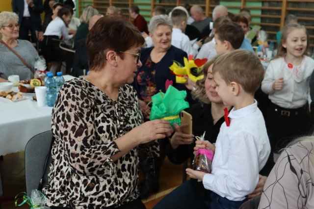 Podczas spotkania zaprezentowano bogaty program artystyczny przygotowany przez uczniów klas pierwszych pod opieką wychowawczyń: pani Renaty Klimek i pani Bernadetty Chmury. Nie zabrakło wierszy, piosenek, tańców, które wzruszyły zaproszonych gości i wywołały wiele uśmiechów. Dzieci z wielkim zaangażowaniem występowały na scenie, starając się jak najlepiej oddać wyjątkowy charakter tego dnia. Po części artystycznej wnuczęta wręczyły swoim babciom i dziadkom własnoręcznie wykonane upominki oraz złożyły serdeczne życzenia. Był to moment pełen ciepła i radości, który na długo pozostanie w pamięci zarówno dzieci, jak i zaproszonych gości. Uroczystość zakończyła się wspólnymi rozmowami przy słodkim poczęstunku. Spotkanie było doskonałą okazją do integracji społeczności szkolnej oraz umocnienia więzi międzypokoleniowych. Dziękujemy wszystkim Babciom i Dziadkom za obecność oraz za miłość, troskę i wsparcie, jakimi każdego dnia obdarzają swoje wnuki. Życzymy dużo zdrowia, uśmiechu i wielu pięknych chwil spędzonych w gronie rodziny. /Monika Kawa/ |