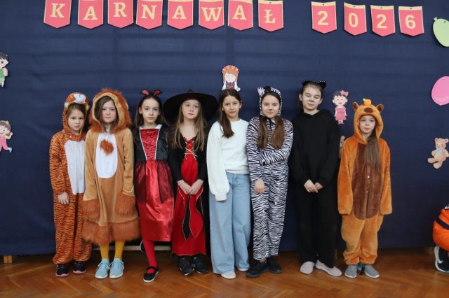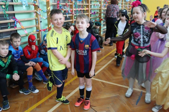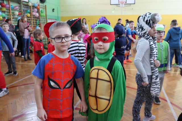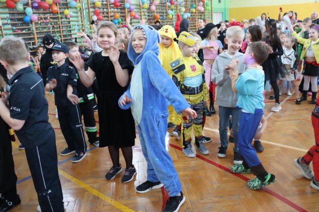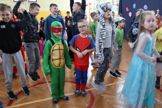 Bal został podzielony na dwie części. W pierwszej fantastycznie bawili się najmłodsi – dzieci z oddziałów przedszkolnych oraz uczniowie klas I–III. Następnie do wspólnej zabawy dołączyli uczniowie klas IV–VIII. Wszyscy uczestnicy mieli okazję wziąć udział w licznych konkursach, tańcach i zabawach integracyjnych. O doskonałą atmosferę zadbali animatorzy z firmy „Nasz Tygrysek”, którzy z ogromnym zaangażowaniem prowadzili zabawy, zachęcając uczniów do aktywnego uczestnictwa i wspólnej radości. Serdeczne podziękowania kierujemy do Rady Rodziców za zaangażowanie w organizację balu oraz przygotowanie poczęstunku dla uczniów. Dzięki wspólnej pracy i wsparciu dorosłych tegoroczna zabawa karnawałowa na długo pozostanie w pamięci wszystkich uczestników. /Monika Kawa/ |